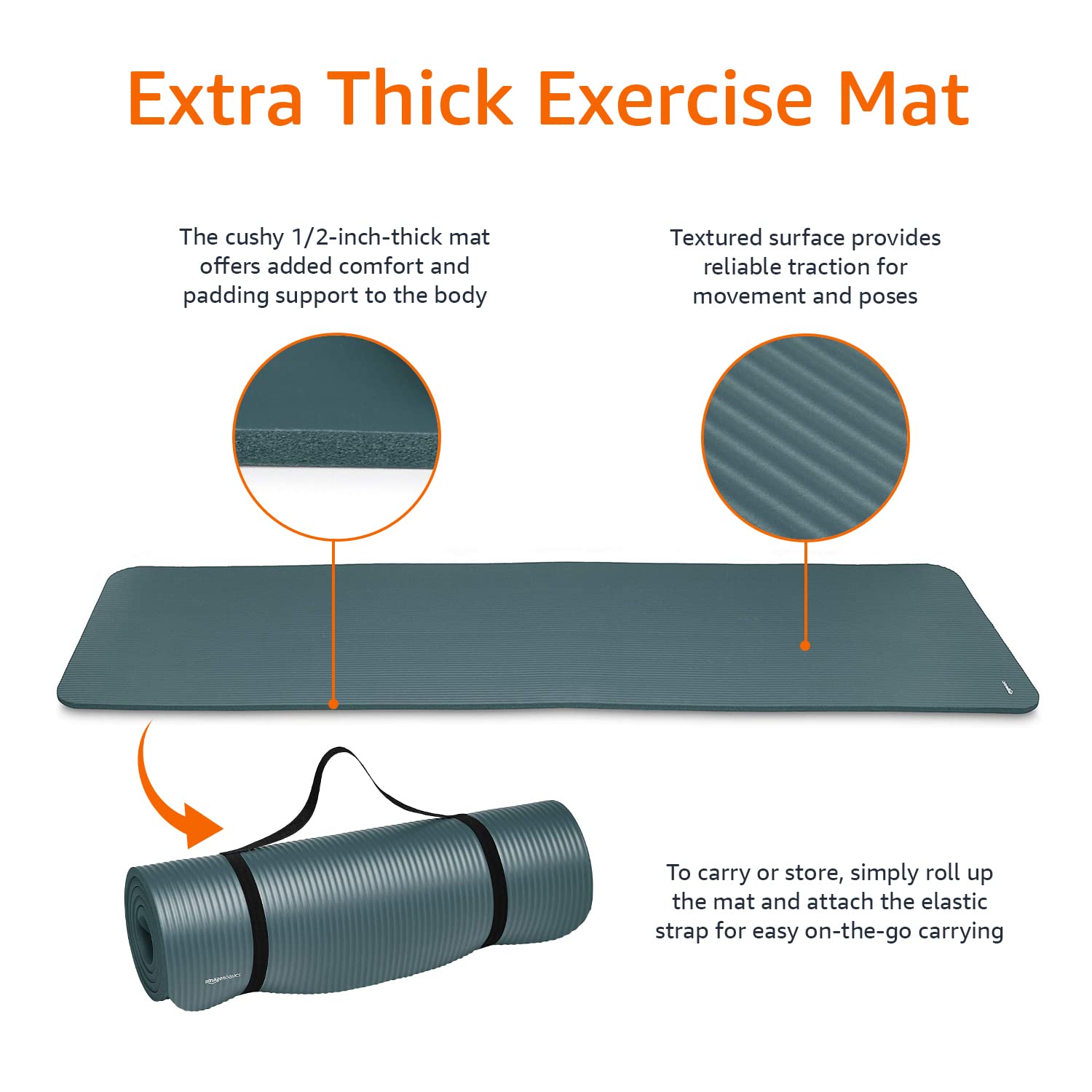 - 1/2-inch, extra-thick yoga mat for comfortable, cushioning support.